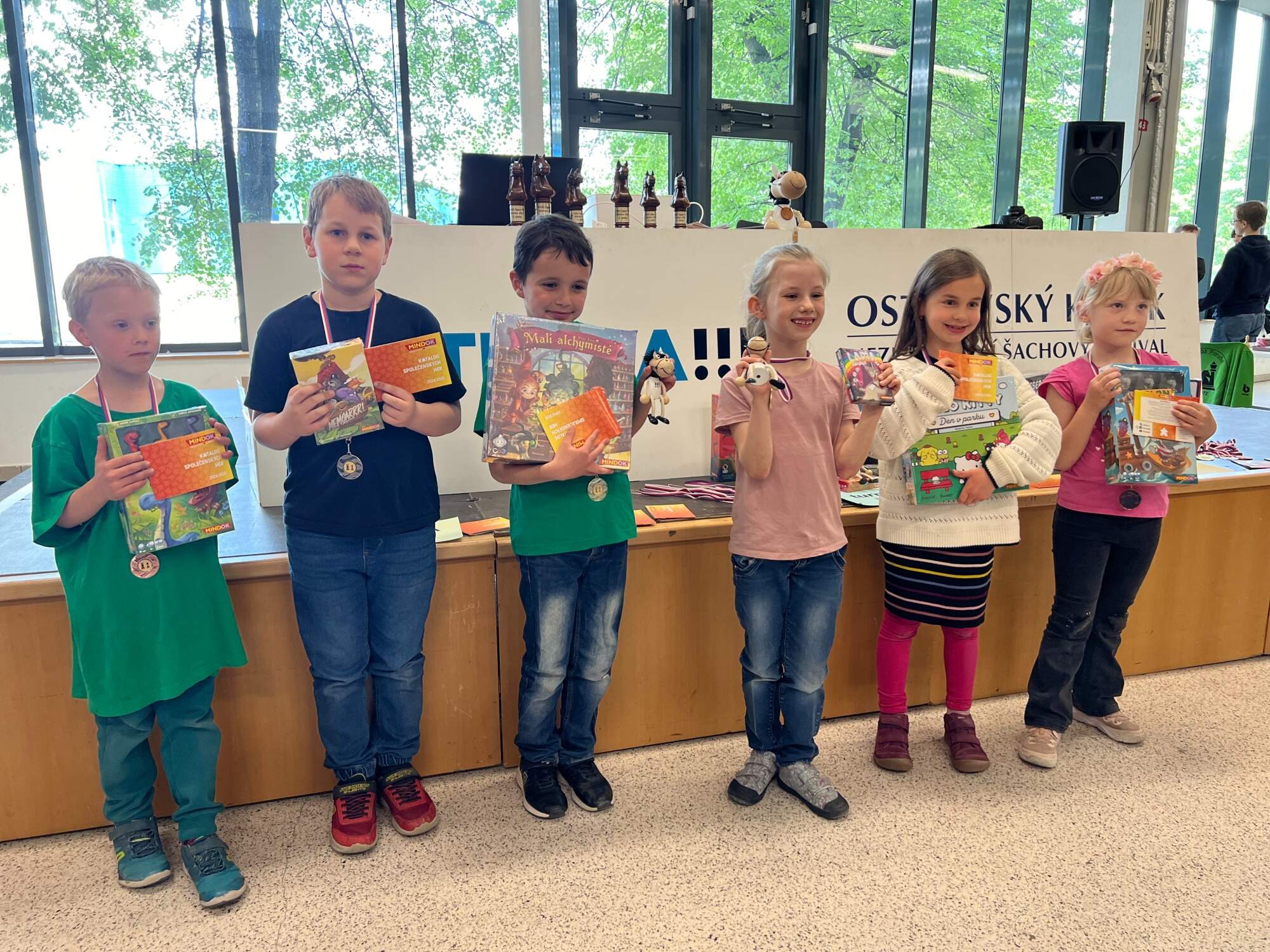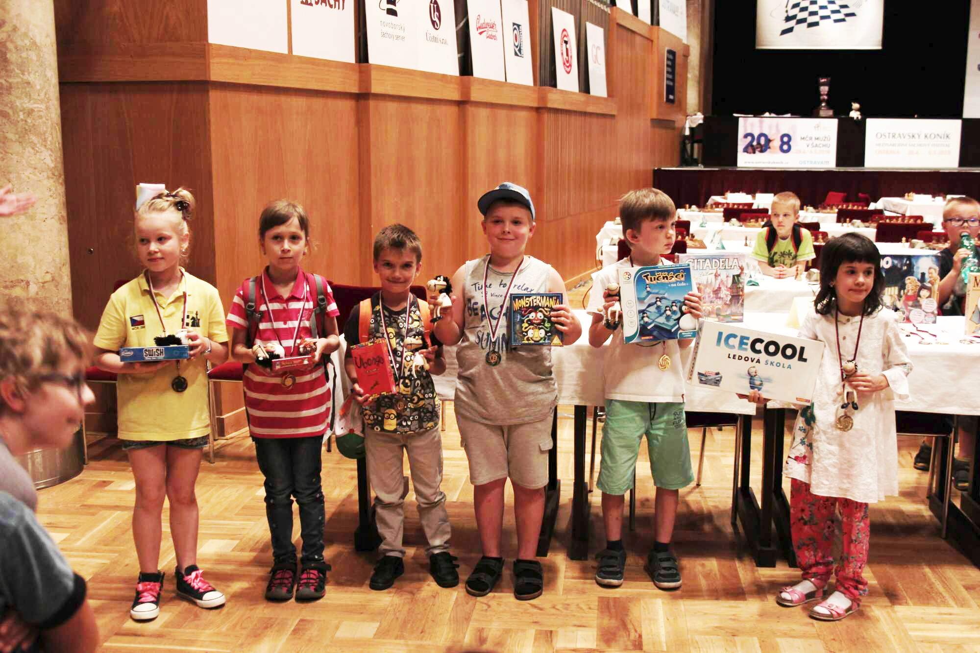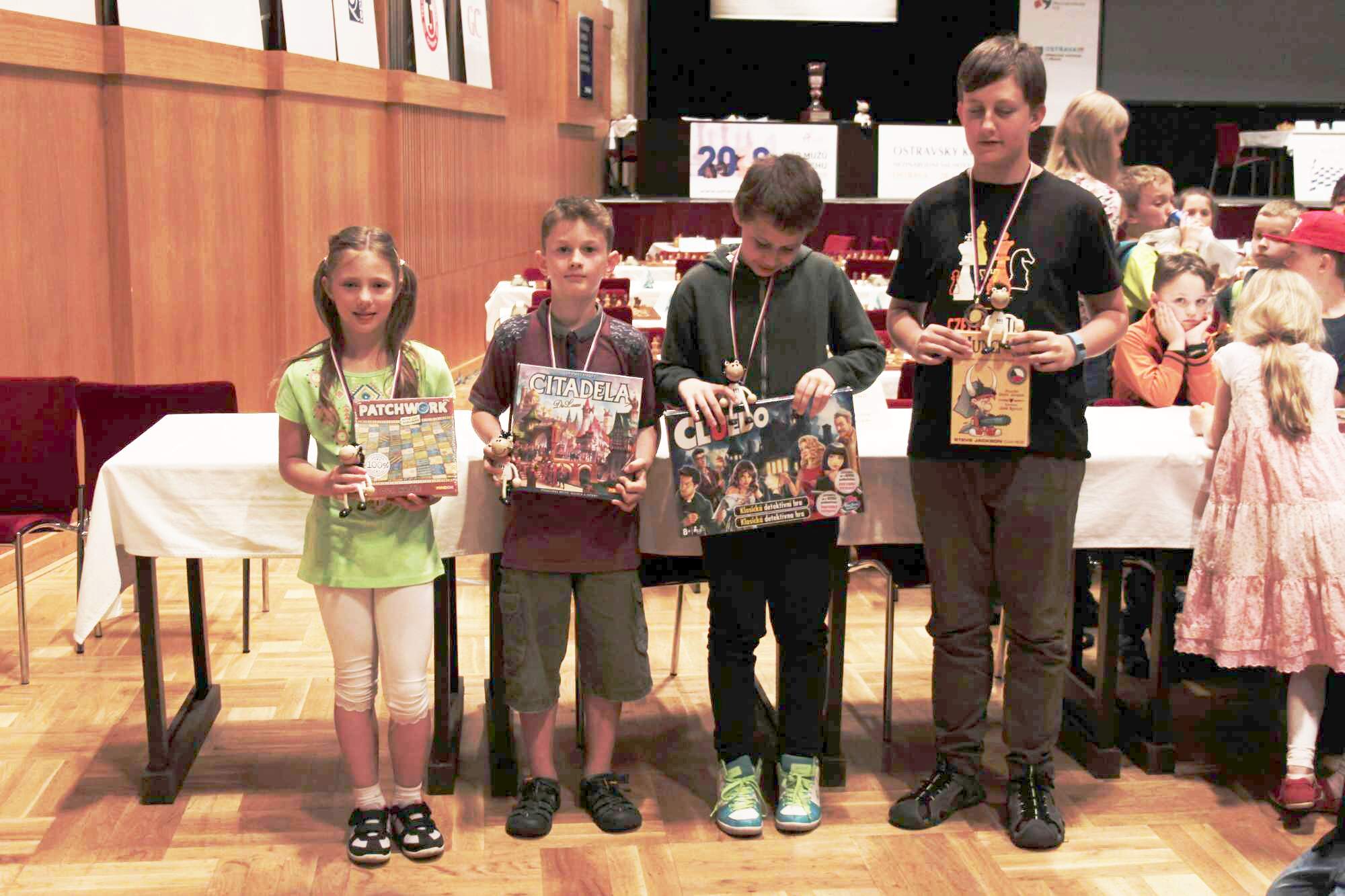 věcné ceny (hry společnosti MINDOK) v každé kategorii pro nejlepší 3 chlapce a nejlepší 3 dívky,