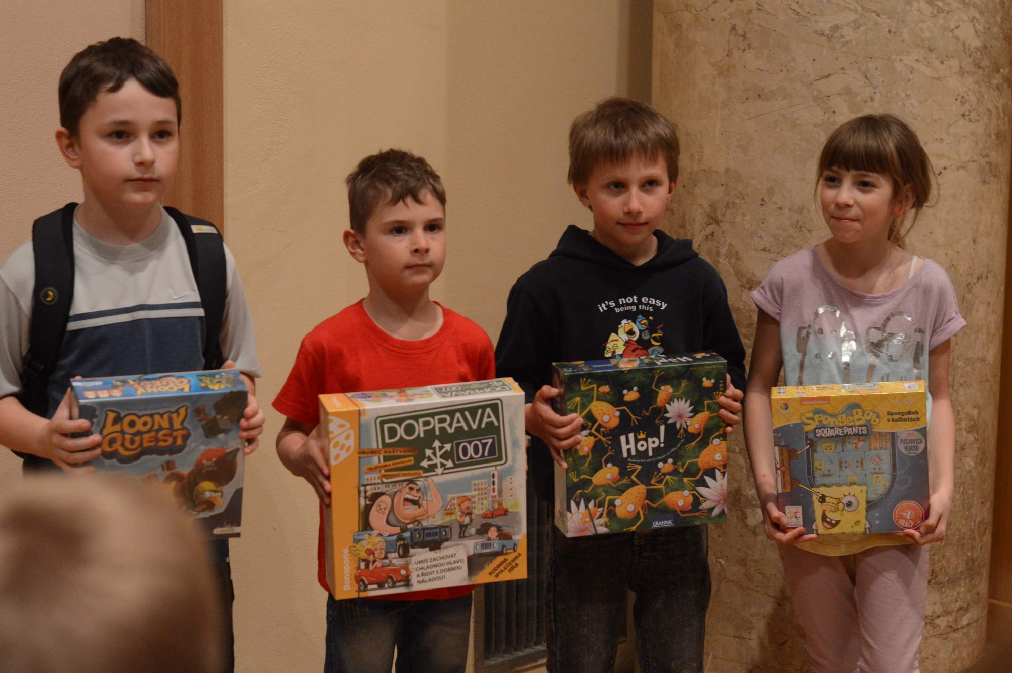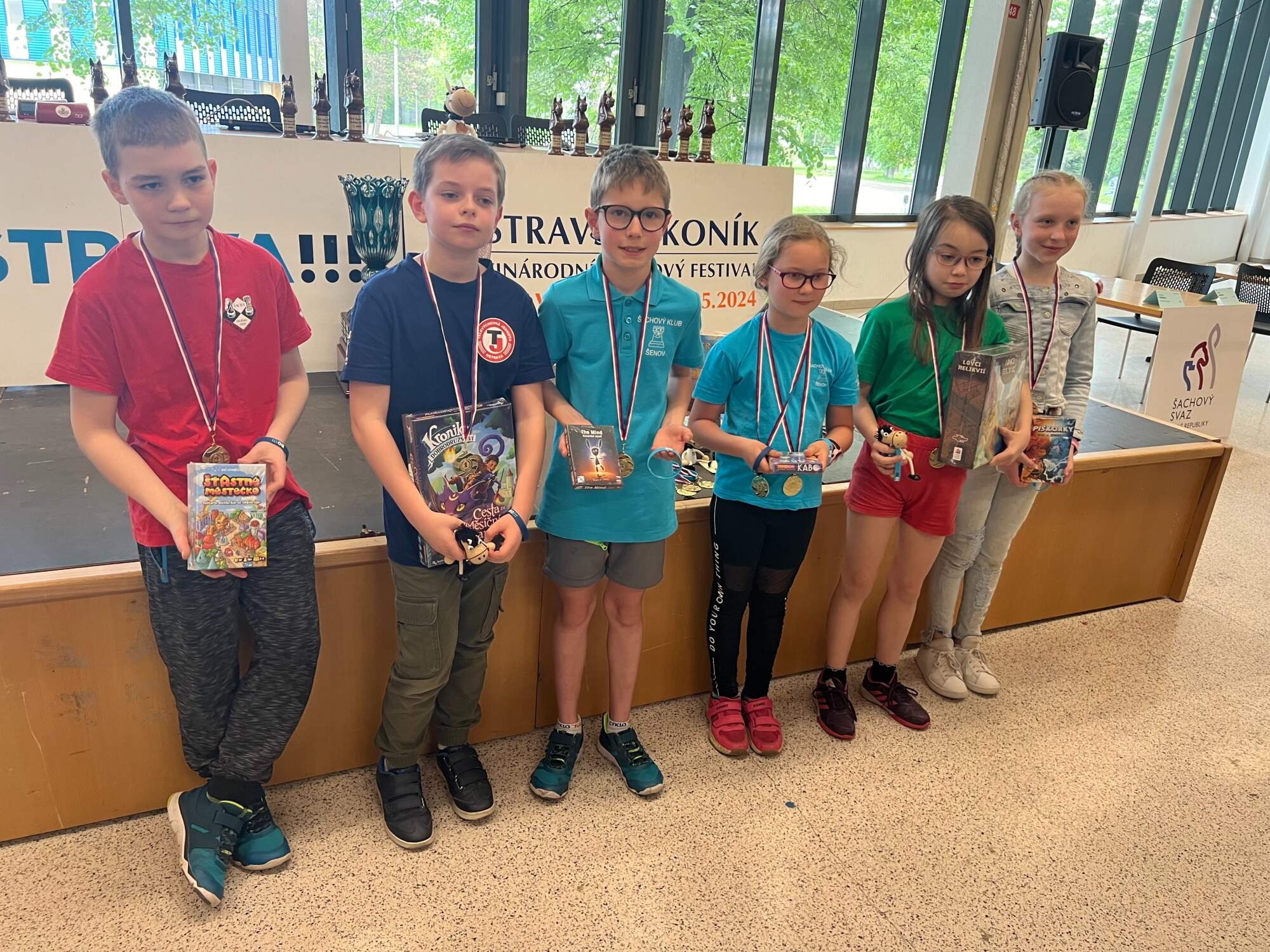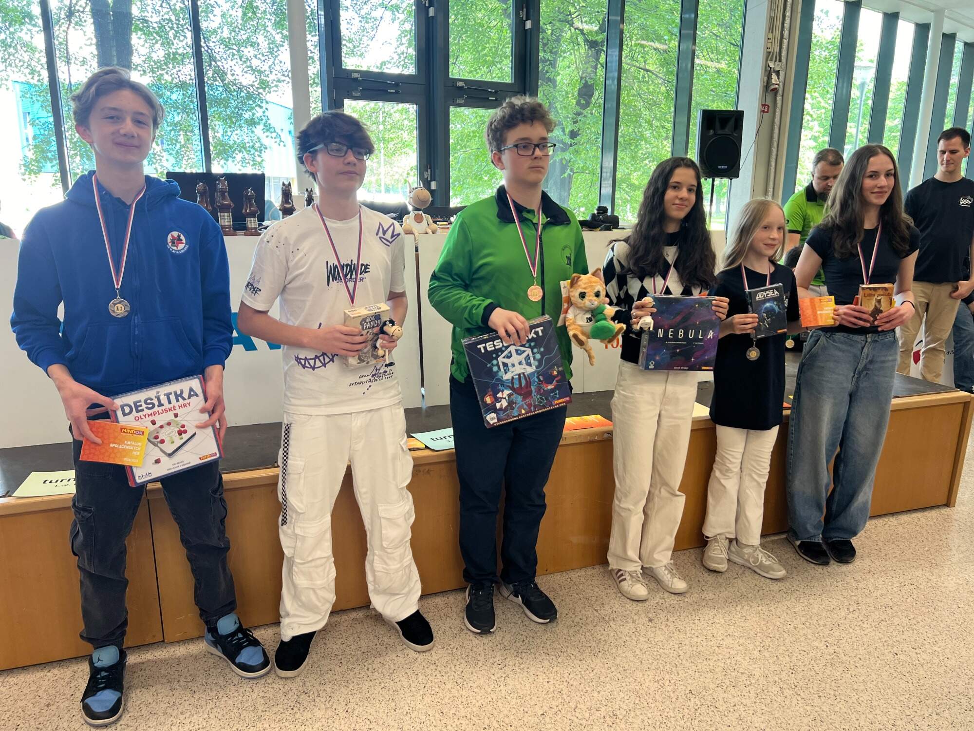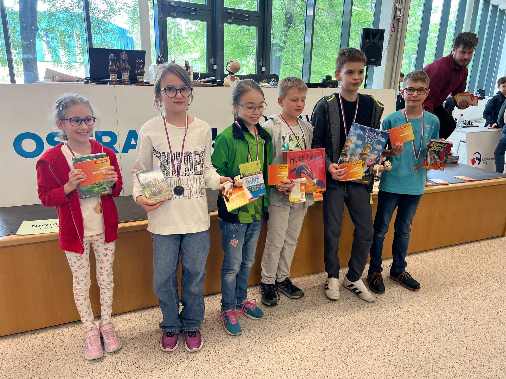 věcné ceny (hry společnosti MINDOK) v každé kategorii pro nejlepší 3 chlapce a nejlepší 3 dívky,